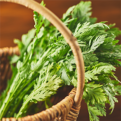 えぐみや苦味が少ないサラダ春菊。葉も柔らかいので、サラダなどにも最適です。
