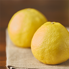 「柚子」×「だいだい」の交配種。生産量が少ないため、幻の果実と言われることもあります。まろやかさ、糖度の高さから、柚香(ゆこう)を絞ったところに醤油をさしてポン酢のような使い方もおすすめです。